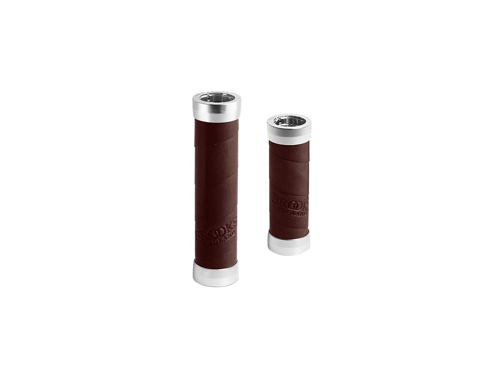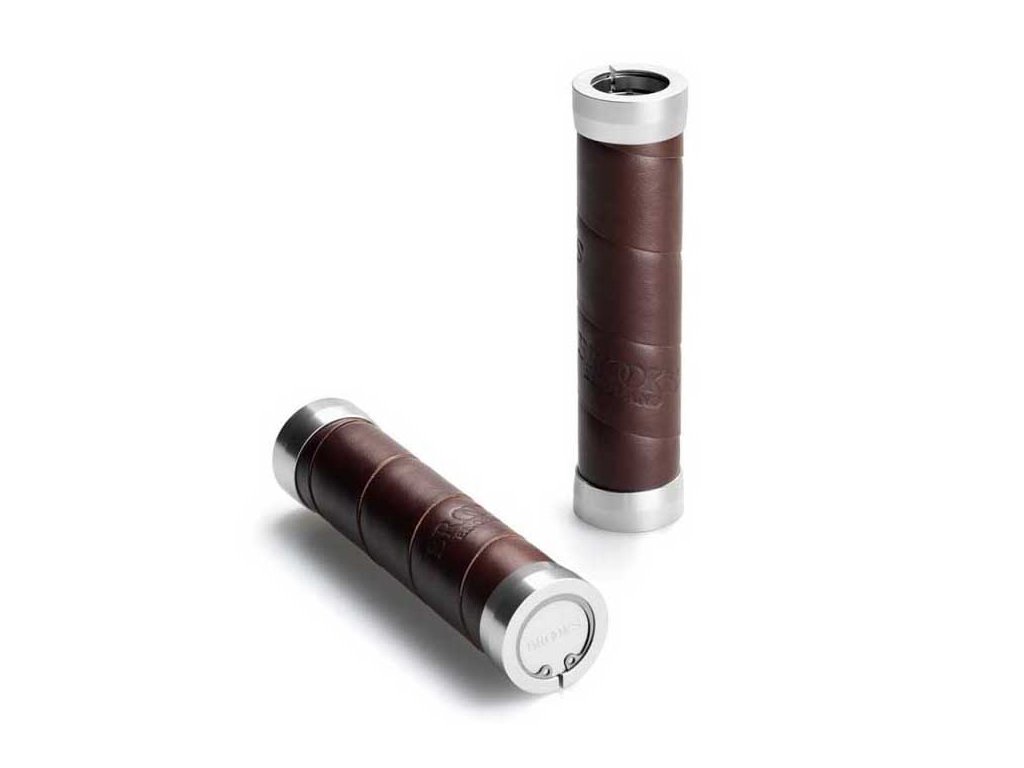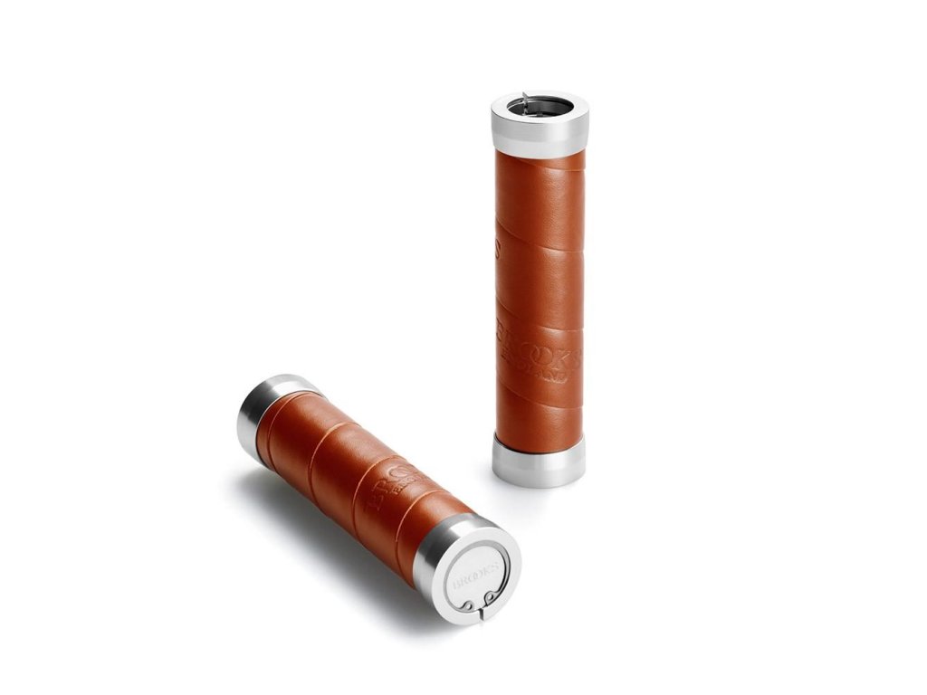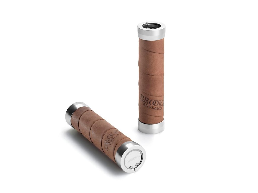 Gripy, které spíše než gripy vypadají jako omotávka. Ta je v tomto případě natočená na hliníkovém těle, které je velice pevně přimontováno k řidítku pomocí dvou objímek. Celkově je grip lehčí než jeho starší kolega z kožených kroužků. Celkové provedení je samozřejmě maximálně precizní tak, jak bývá u Brooksu běžné. O neuvěřitelných detailech nemluvě.