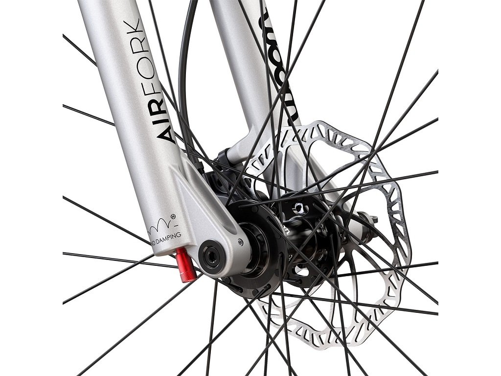 Komfort a ovládání v nejtěžším terénu je dáno díky vysoce kvalitní odpružené vidlici, kterou lze přizpůsobit hmotnosti jezdce. S nastavitelnou kompresí a tlumením odskoku lze vidlici vyladit podle terénu a denních podmínek, plus její blokovací funkce je bonusem při stoupání.