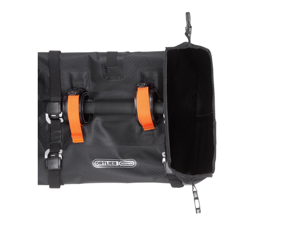 Vodotěsná brašna na řídítka ORTLIEB Handlebar-Pack je nepostradatelným pomocníkem při cyklistických výletech do přírody. V závislosti na konkrétním modelu nabízí objem 9 nebo 15 litrů pro váš spací pytel a karimatku. Pomáhá také zajistit vyvážené rozložení výbavy a hmotnosti na kole. Díky rolovacím uzávěrům na obou koncích máte vždy rychlý přístup ke svému vybavení. Kompresní pásy na vnější straně umožňují uložení a připevnění dalšího vybavení.