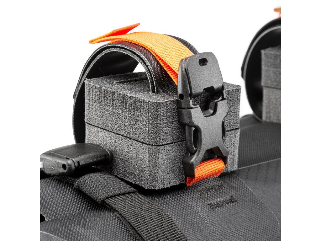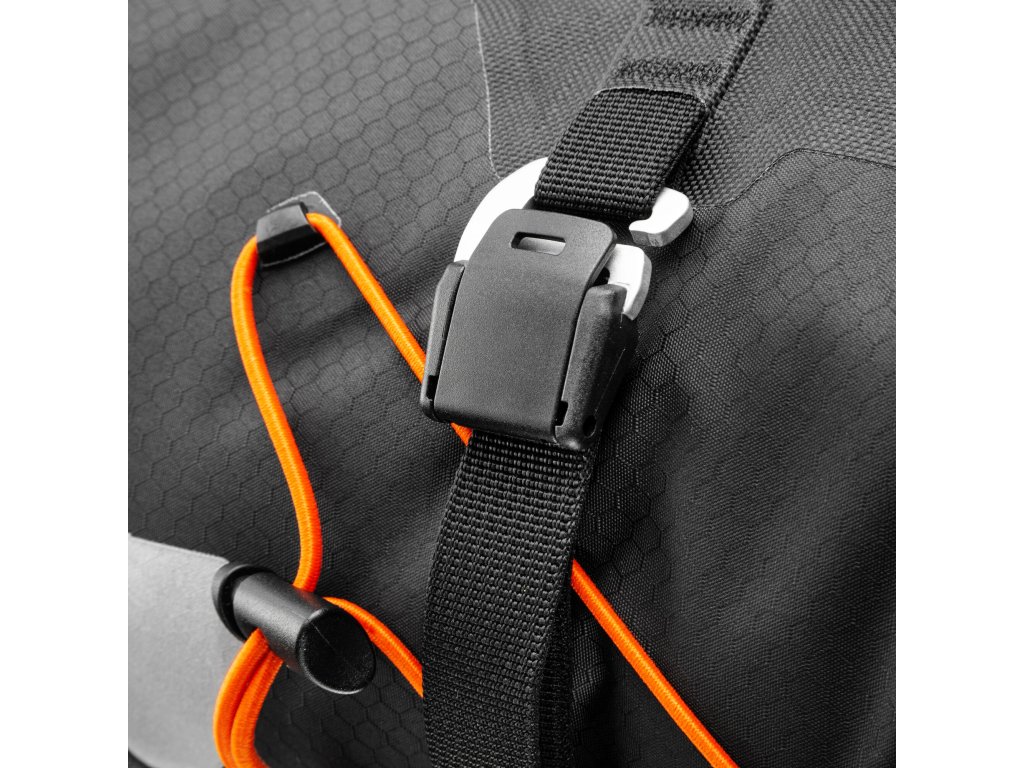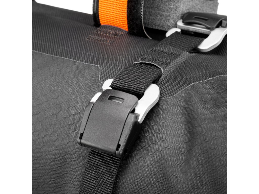 Kromě toho je brašna na řídítka vybavena čtyřmi háčky, které umožňují připevnit brašnu ORTLIEB Accessory Pack a získat tak další úložný prostor. Montážní systém, který se skládá z distančních prvků a dvou pevných pásků na suchý zip, zajišťuje bezpečné upevnění na jakýkoli typ řídítek, včetně karbonových. Vyztužený vnitřek batohu a upevnění na hlavové trubce poskytují dodatečnou stabilitu v jakémkoli terénu.