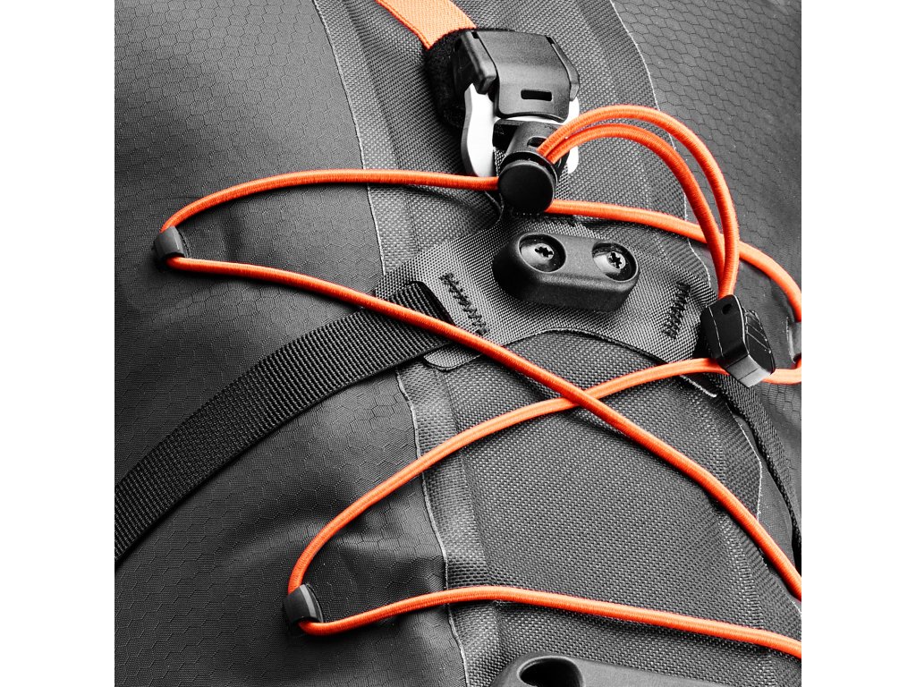 Vnitřní výztuha a pět kompresních popruhů zajistí, že obsah bude pevně a bezpečně zabalen. Ventil s popruhem na rukojeť pomáhá stlačit objem batohu a gumička na vnější straně umožňuje připevnění dalšího vybavení. Aby se zabránilo poškození při kontaktu s pneumatikou, je na spodní straně Seat-Pack QR připevněna ochranná deska, která zároveň slouží jako blatník.