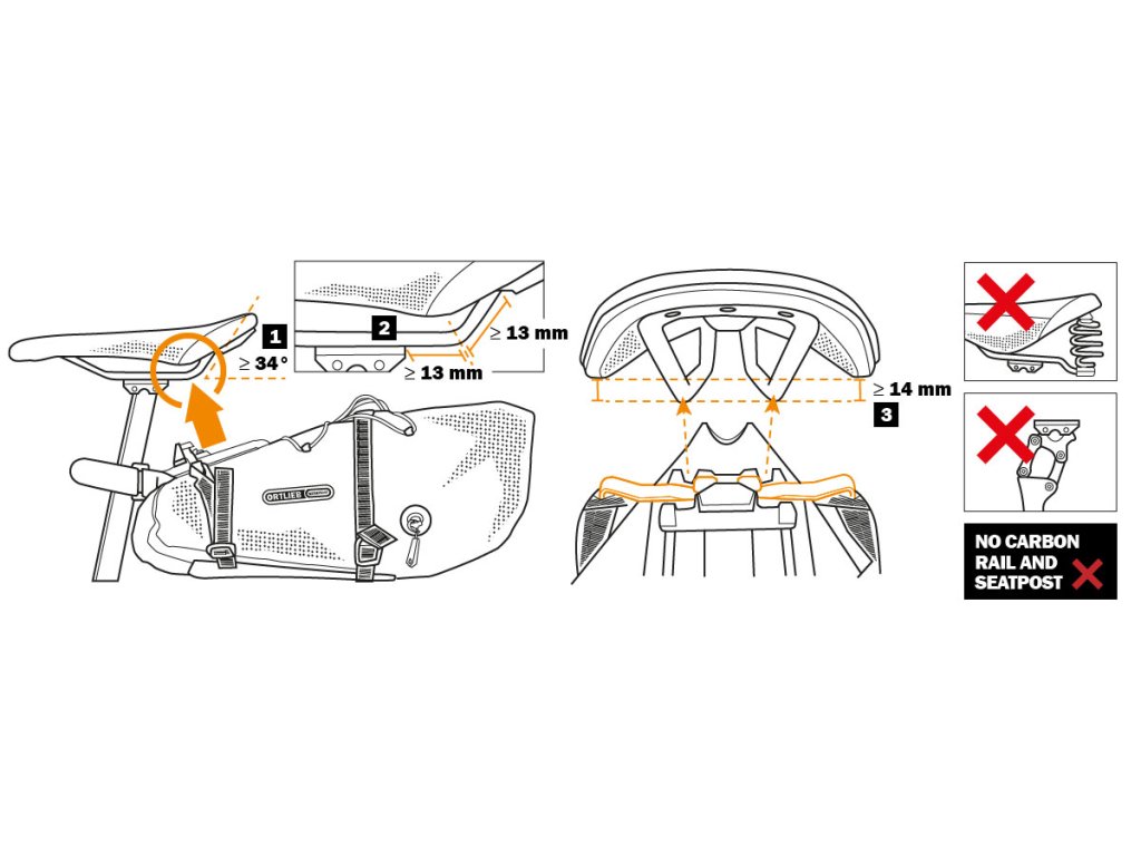 Zámek sedlovky musí být minimálně 13 mm od středu ohybu ližiny. Současně musí být min. 13 mm od středu ohybu k místu, kde se ližina připojuje k zadní části sedla.