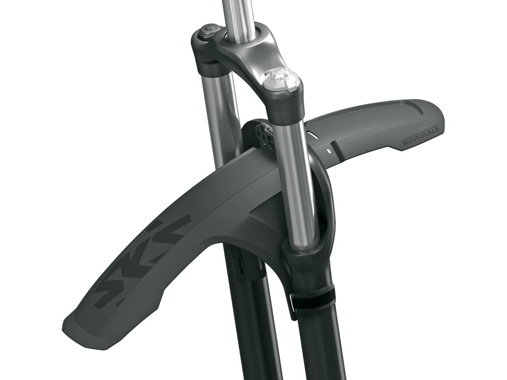 Jednoduchý designový blatník pro celoodpružená kola. Uchycuje se na můstek vidlice, zde se uchytí dodávaným adaptérem. Blatník může být připevně k můstku také páskami se suchým zipem či plastovými stahovacími pásky.