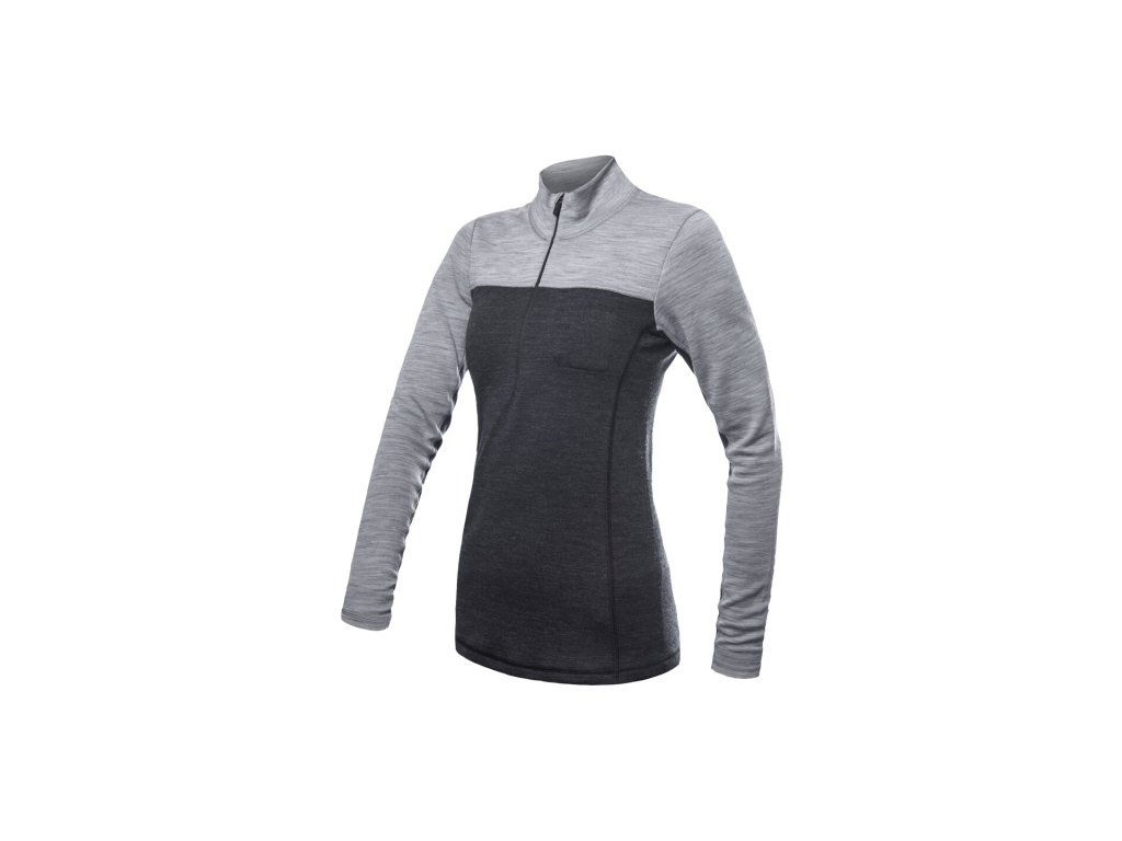 SENSOR MERINO BOLD dámské triko dl.rukáv zip anthracite/cool gray