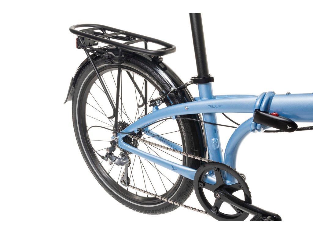 Řada skládacích kol Tern Node je postavena na 24“ kolech, což je směr, kterým se svět skládaček momentálně ubírá a Tern je v čele tohoto pelotonu. Kola Tern Node se vyznačují vlastnostmi standardního kola, ale lze je jednoduše za necelých 10 vteřin složit do kompaktní velikosti a vzít je s sebou do kufru auta, do MHD, uložit doma v obýváku nebo v zaměstnání u pracovního stolu. Je to ideální kolo nejen pro velké a vysoké cyklisty, pro které může být jedinou vhodnou skládačkou vůbec, ale ocení jej všichni, kdo mají rádi komfort a rychlost velkých kol a přitom u nich doslova pár centimetrů po složení nehraje roli. Skvěle se tak hodí nejen pro dojíždění do práce vybranými vlaky, ale naprosto úžasný je pro dovolenkování, kdy do kufru auta pohodlně složíte několik těchto kol a v cílové destinaci máte k dispozici pohodlné a téměř plnohodnotné jízdní kolo, keré vám mnozí budou závidět.