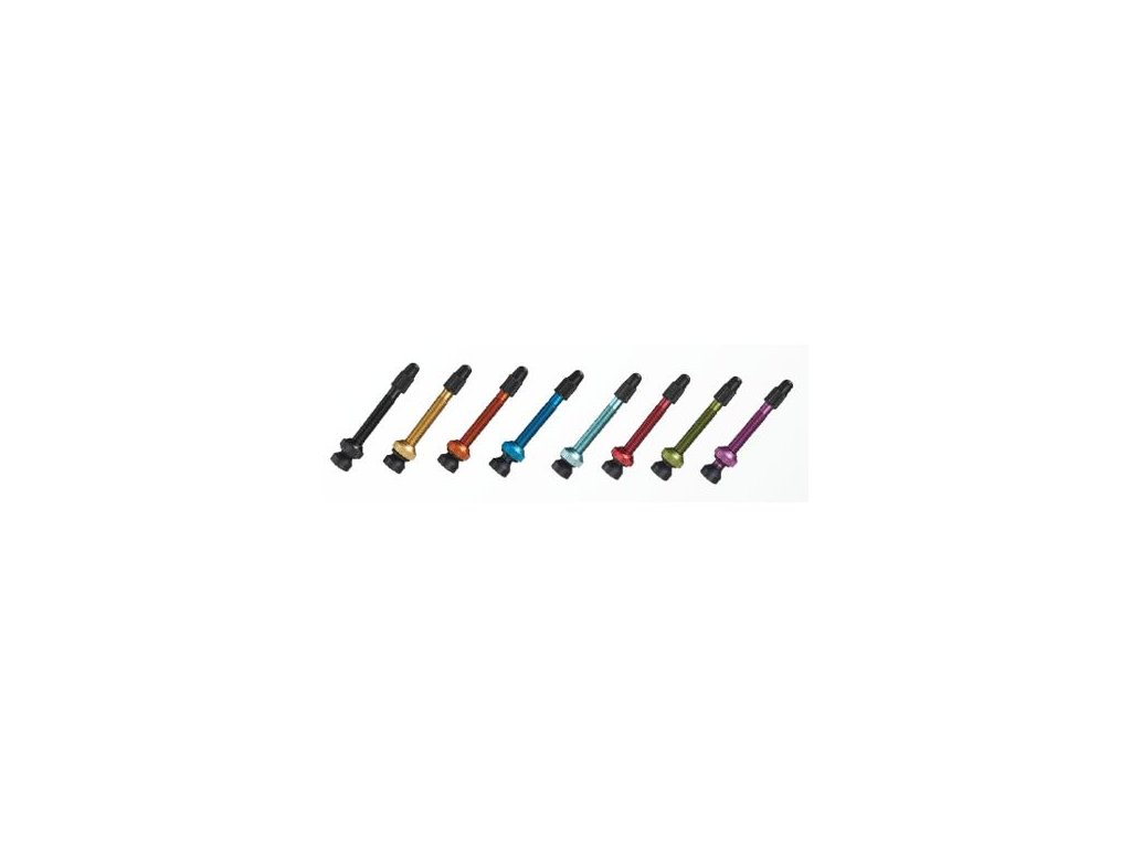 Bezdušový SV ventilek, délka 45 mm, modrý elox.Cena za pár.